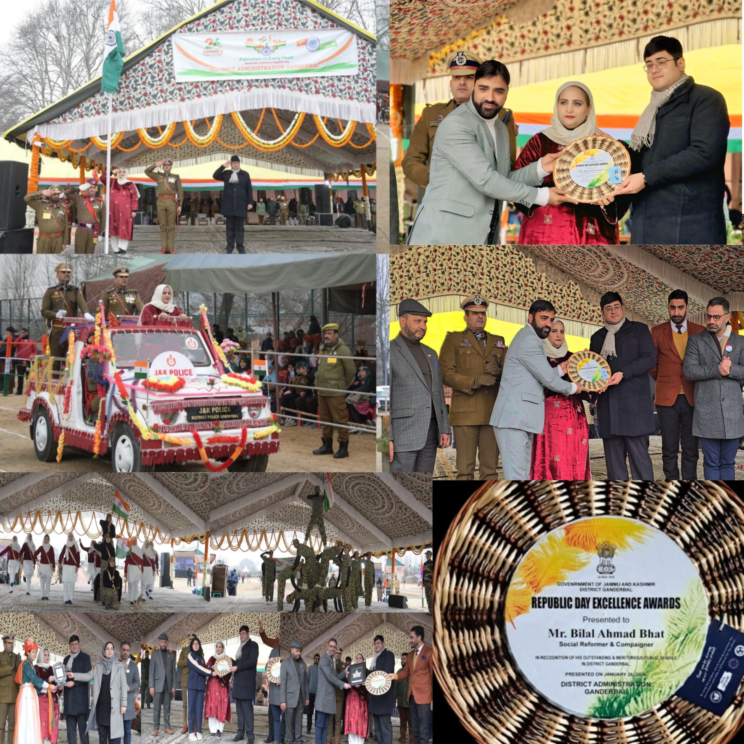 Ganderbal, January 26, 2026: Renowned Campaigner, Social Reformer, and Motivational Speaker, Bilal Bhat, was awarded by the District Administration Ganderbal…
